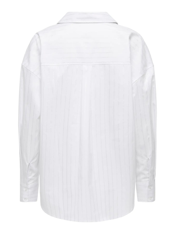 Chemise blanche à fines rayures verticales en lurex, à la coupe droite élégante et contemporaine.