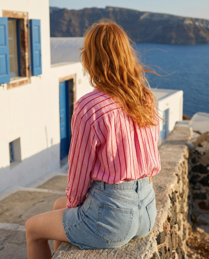 Les manches longues, faciles à retrousser, permettent d’adapter le style selon l’allure recherchée. La matière légère assure un porté confortable, idéal pour les journées ensoleillées.