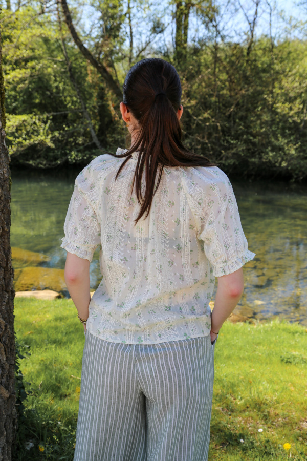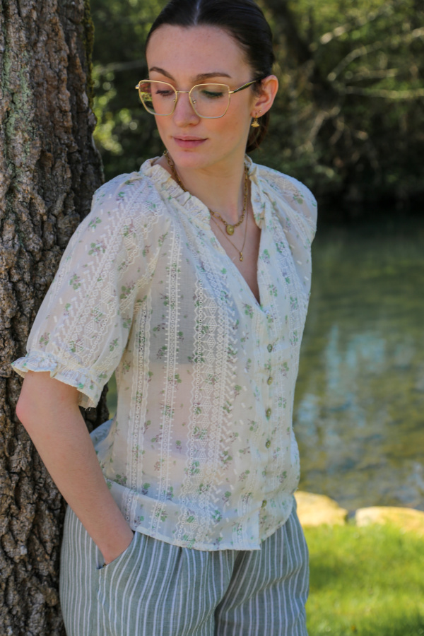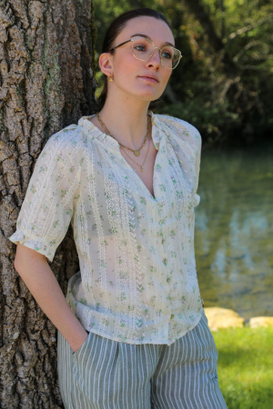 Apportez une touche de fraîcheur et de féminité à votre garde-robe avec ce chemisier à motif floral délicat. Son col V flatteur met en valeur le décolleté tout en ajoutant une note de sophistication. Parfait pour le bureau ou pour une sortie décontractée, ce chemisier se marie facilement avec une jupe, un pantalon ou même un jean pour un look élégant et léger.