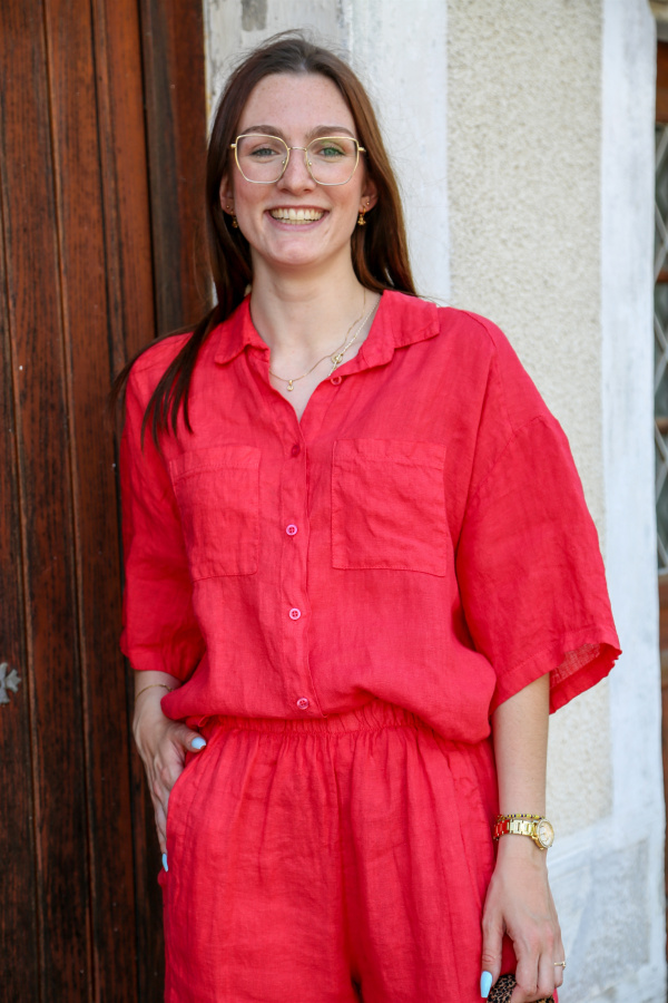 Adoptez un style naturel et raffiné avec cette chemisette en 100% lin, idéale pour la saison estivale. Ses manches évasées apportent une touche féminine et fluide, tandis que les pochettes poitrine ajoutent un détail pratique et stylé.