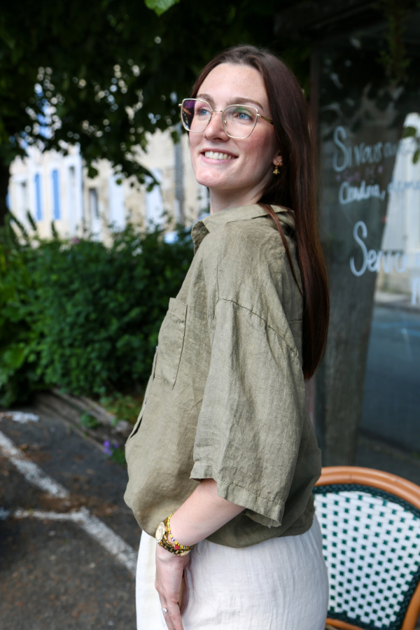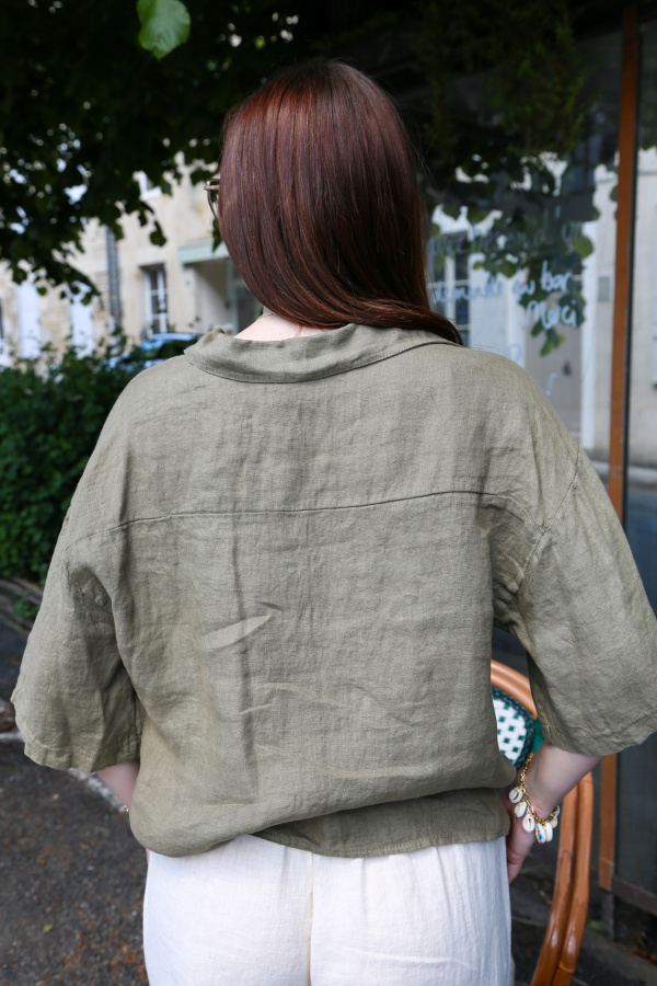 Adoptez un style naturel et raffiné avec cette chemisette en 100% lin, idéale pour la saison estivale. Ses manches évasées apportent une touche féminine et fluide, tandis que les pochettes poitrine ajoutent un détail pratique et stylé.