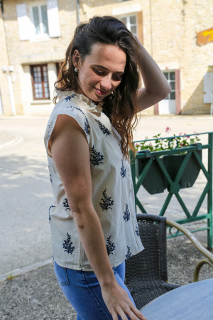 Le chemisier Eglantine est parfait pour un look casual chic au bureau, une sortie entre amis, ou une journée décontractée en ville. Il se marie parfaitement avec un jean, une jupe ou un pantalon pour un style frais et élégant.