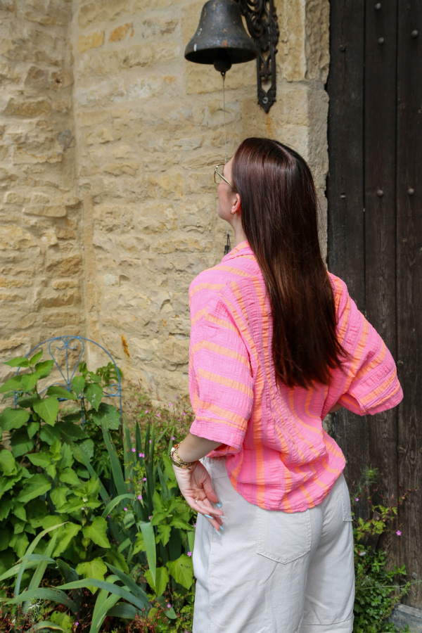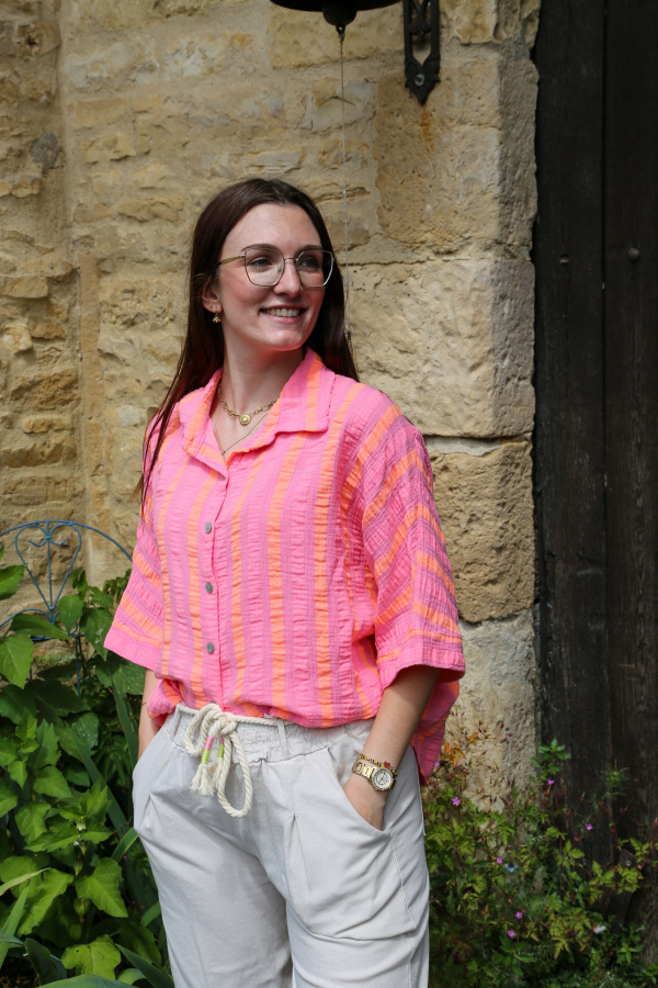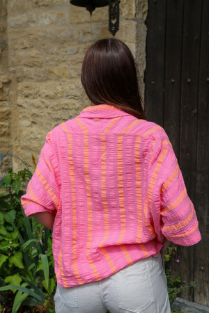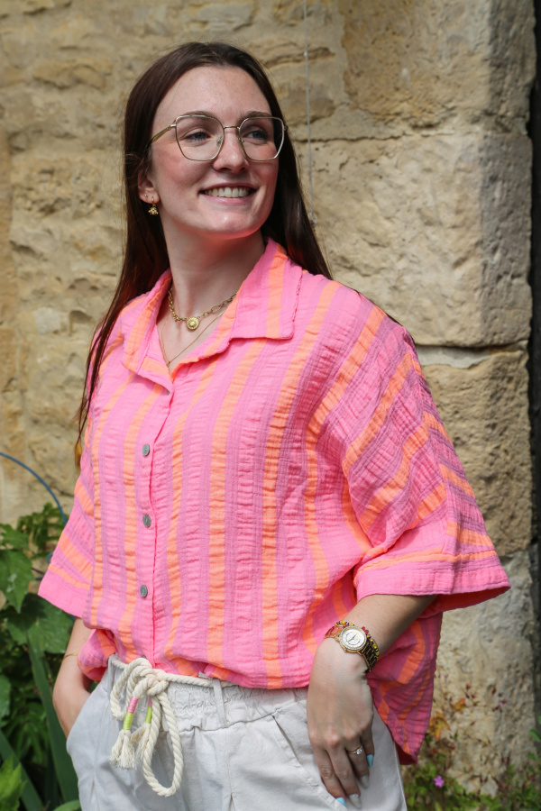 Alliez confort et élégance avec cette chemisette en gaze de coton, légère et respirante, idéale pour les journées ensoleillées. Confectionnée dans une matière douce et naturellement froissée, elle offre une sensation de légèreté incomparable. Son motif à rayures apporte une touche de fraîcheur et de modernité, parfaite pour un look estival décontracté ou plus habillé selon les accessoires choisis.