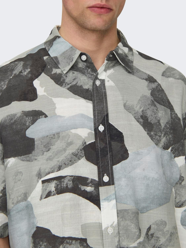 Affichez un style frais et moderne avec cette chemisette homme à motif, conçue pour vous offrir à la fois confort et élégance. Parfaite pour les journées chaudes, elle allie une coupe relaxed fit décontractée et des motifs tendance qui ajoutent une touche de caractère à votre tenue.