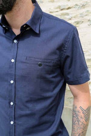 Cette chemise à manches courtes au style épuré,est relevée par des détails subtils et raffinés.