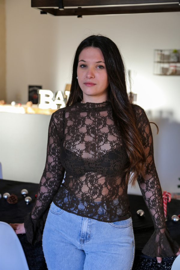 Ce top en dentelle mise sur la transparence subtile pour un look à la fois raffiné et audacieux. Son col rond intemporel encadre joliment le décolleté, tandis que les manches longues évasées aux poignets apportent une touche romantique et bohème.