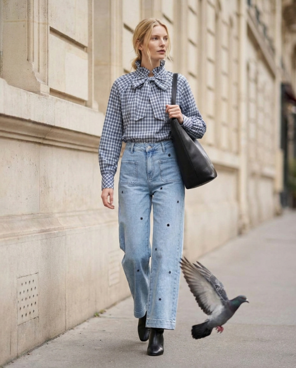 Blouse à l’esprit romantique et élégant, confectionnée dans un tissu léger et fluide au motif carreaux bleu et blanc. Une pièce douce et féminine, idéale pour un vestiaire chic du quotidien.