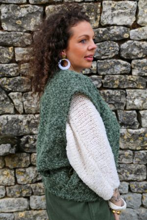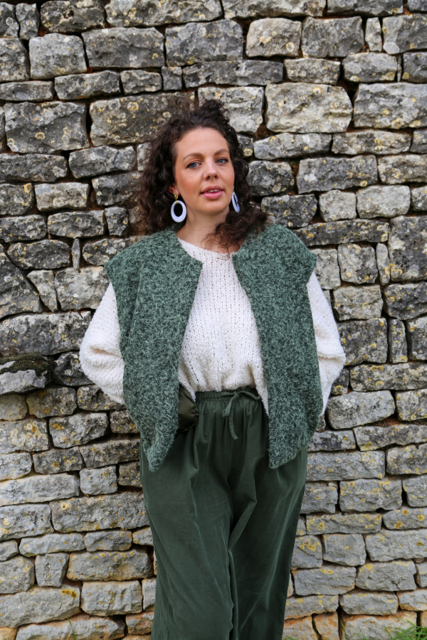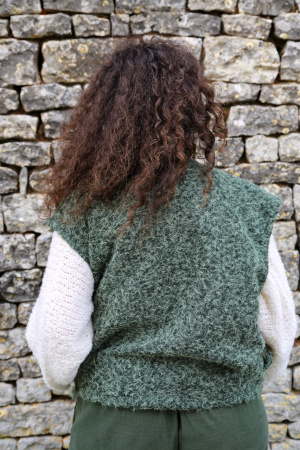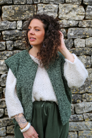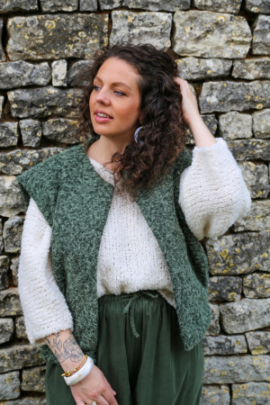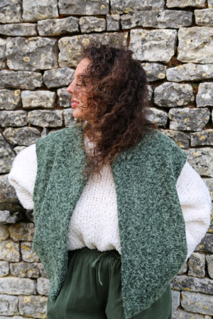Ce gilet sans manches au délicat aspect feutrine apporte une touche moderne et épurée à votre tenue. Conçu sans fermeture, il se porte ouvert pour une allure fluide et décontractée. Sa matière douce et structurée offre un joli tombé, idéal pour superposer sur un pull fin, une chemise ou une robe. Une pièce légère et polyvalente, parfaite pour ajouter une note de style en toute simplicité.
