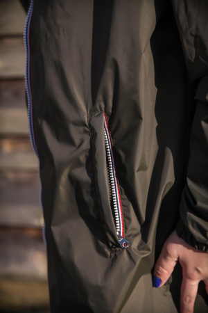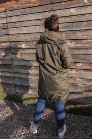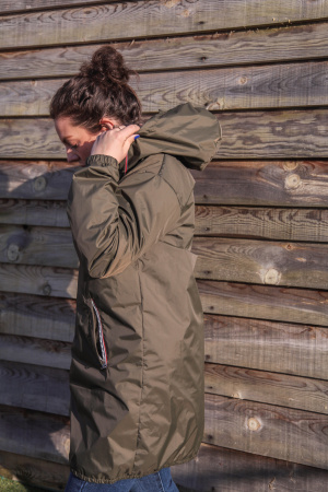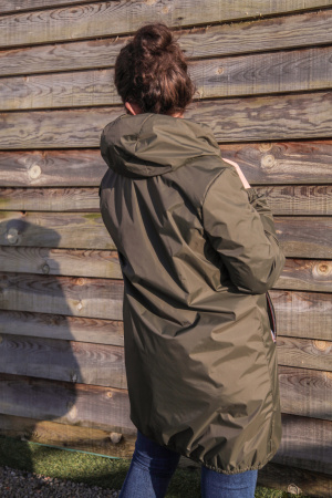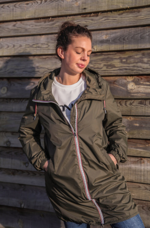 Réf : 23078 Coupe vent long Saffia Longueur des manches : Manches longues Décolleté : Col capuche Fermeture : A zip Poche : 2 poches latérales avec fermetures éclairs Cordon de serrage à la capuche Manches ressérées aux poignets