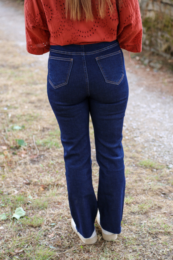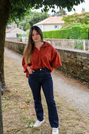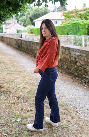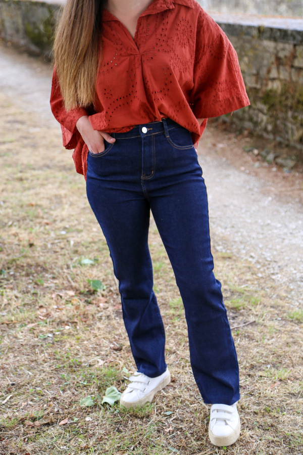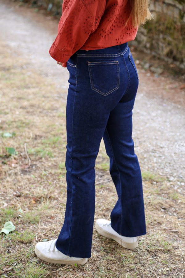 Le bas effiloché ajoute une dimension décontractée et tendance, parfait pour celles qui aiment un look déstructuré mais élégant. Confectionné dans un denim souple et légèrement extensible, il offre à la fois confort et maintien tout au long de la journée.