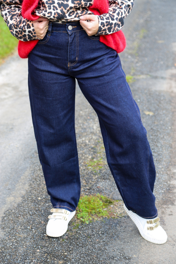 Alliez confort et style avec ce jean coupe balloon à la taille haute flatteuse. Son volume arrondi sur les hanches et resserré aux chevilles crée une silhouette moderne et décontractée, inspirée du style vintage revisité.