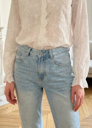 La coupe est ample sur toute la longueur, avec une jambe extra large qui crée une belle fluidité à chaque mouvement. La ligne reste nette grâce à un denim qui garde de la tenue, idéal pour composer des silhouettes minimalistes ou plus mode.