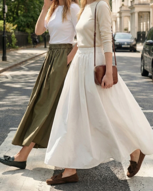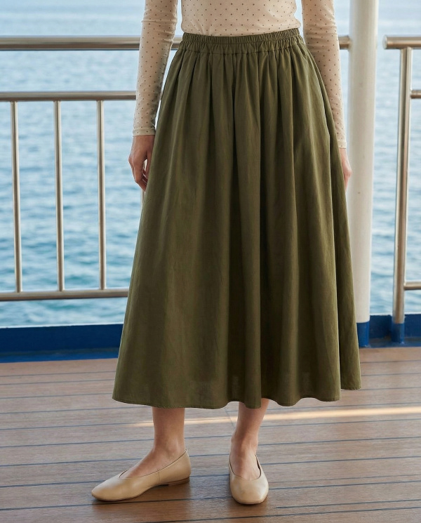 Jupe longue à la coupe ample, pensée pour offrir une silhouette élégante et naturelle. Sa taille élastiquée assure un confort optimal tout en structurant délicatement la ligne.