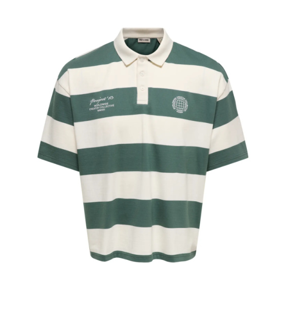Polo ONLY à rayures larges vert et écru, au style rétro revisité.
