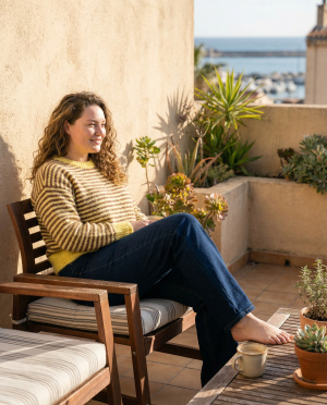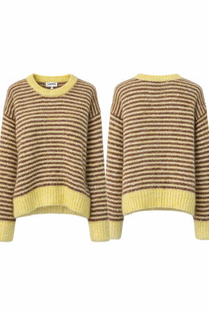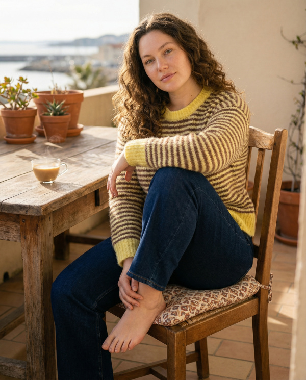Pull en maille douce à fines rayures, dans des tons naturels et apaisants. Confortable et élégant, il se porte facilement seul ou en superposition pour un look casual chic et intemporel au quotidien.
