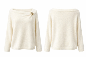 L’encolure bateau apporte une touche sophistiquée et dégage délicatement le port de tête. Elle est soulignée par un détail bijou discret sur l’épaule, qui apporte une note chic et différenciante sans en faire trop.