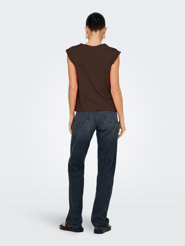 Ce top uni à la coupe regular fit est un essentiel à la fois simple et élégant. Sans manches, il est parfait pour les journées plus chaudes ou pour être superposé sous un gilet ou une veste. Le col rond offre une allure classique, tandis que les détails en dentelle sur les manches ajoutent une touche féminine et raffinée. Ce top versatile se prête à de nombreuses occasions, que ce soit pour une tenue décontractée ou un look plus habillé. Facile à assortir avec vos pantalons ou jupes préférés, il est un incontournable pour un style élégant et moderne.