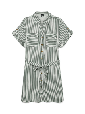 Sa coupe fluide et sa ceinture à nouer dessinent la silhouette avec légèreté, tandis que ses poches et ses manches retroussées apportent une touche casual. Facile à porter, elle allie confort et allure moderne au quotidien.