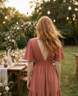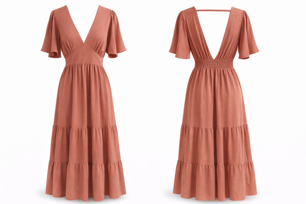 Le décolleté en V et les manches courtes aériennes apportent de la légèreté, tandis que la jupe à étages crée un mouvement naturel et féminin. Une pièce facile à porter, pensée pour allier confort et élégance au quotidien.