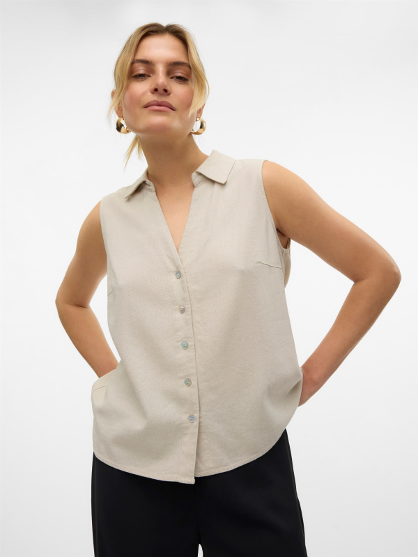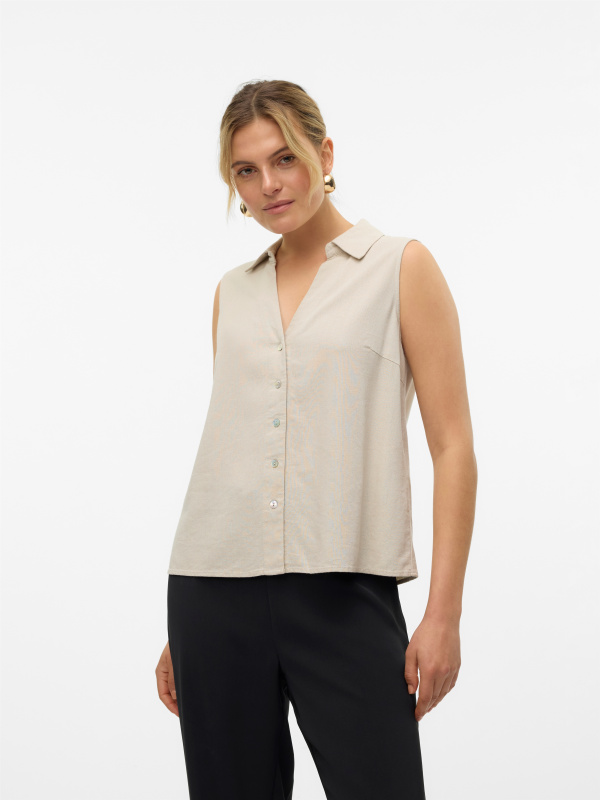 Chemise sans manches, chic et minimaliste.