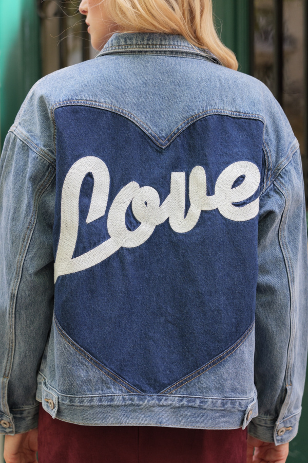Adoptez un look résolument tendance avec cette veste en jean oversize, parfaite pour twister toutes vos tenues du quotidien. Son style décontracté et son allure urbaine en font un indispensable du vestiaire moderne. 💙 Détail coup de cœur : un grand cœur dans le dos, accompagné de l’inscription "LOVE", pour une touche romantique et affirmée qui ne passera pas inaperçue.