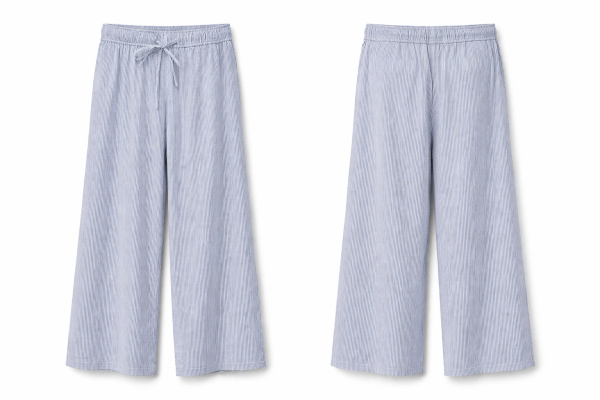 Adoptez une silhouette fluide et contemporaine avec ce pantalon large femme à rayures fines bleu clair, conçu pour allier confort et élégance naturelle. Sa coupe ample et droite allonge la ligne tandis que sa taille élastiquée avec cordon de serrage assure un ajustement parfait au quotidien.