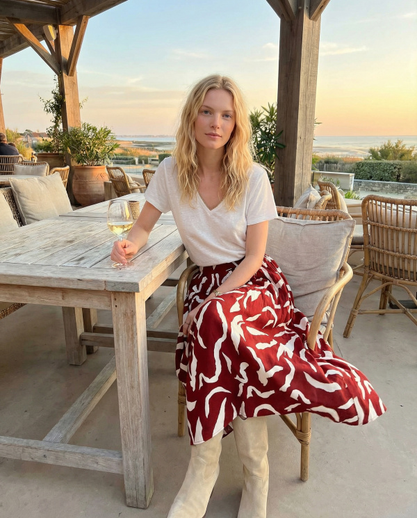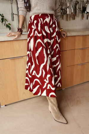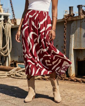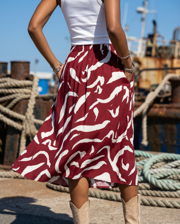Apportez une touche de légèreté à votre garde-robe avec cette jupe longue 7/8 au motif tendance. Confectionnée dans un tissu fluide et agréable à porter, elle offre une silhouette élégante sans compromis sur le confort. Sa taille élastique s’adapte parfaitement à votre morphologie et assure un maintien optimal tout au long de la journée. Facile à associer avec un top uni ou une chemise légère, cette jupe deviendra vite un indispensable de la saison.