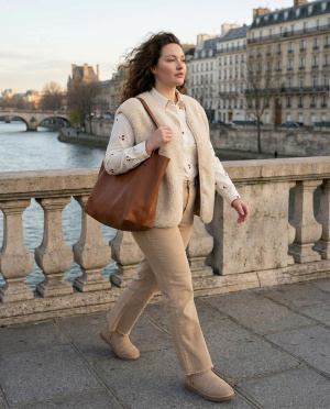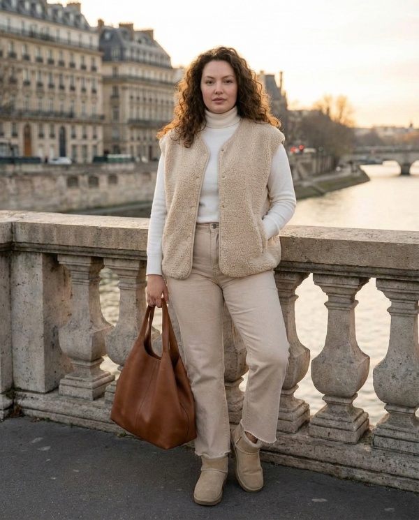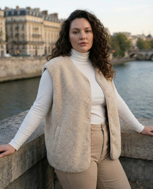 Gilet sans manches à l’allure contemporaine et cosy, conçu pour apporter une touche mode tout en restant facile à superposer. Réalisé dans une maille texturée effet bouclé, il offre un porté doux et enveloppant, idéal pour la mi-saison comme pour l’hiver.