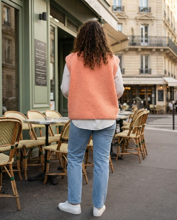 Gilet sans manches à l’allure contemporaine et cosy, conçu pour apporter une touche mode tout en restant facile à superposer. Réalisé dans une maille texturée effet bouclé, il offre un porté doux et enveloppant, idéal pour la mi-saison comme pour l’hiver.