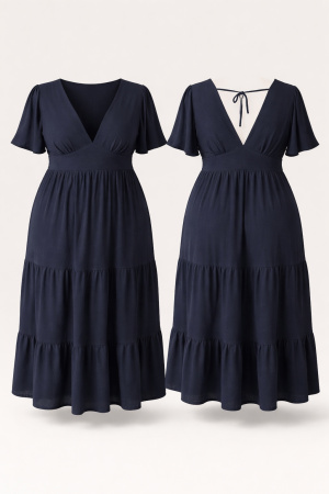 Robe Irina en grande taille, une pièce fluide et élégante pensée pour sublimer la silhouette avec naturel. Sa coupe empire, marquée sous la poitrine, structure le haut du corps tout en laissant le tissu s’évaser avec légèreté.