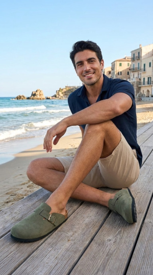 Sabots contemporains à l’allure fonctionnelle et épurée. Leur design minimal est souligné par une bride latérale ajustable qui assure maintien et caractère. Le suède apporte une tonalité naturelle et actuelle, tandis que la semelle plate garantit un confort optimal pour un usage quotidien, en intérieur comme en extérieur.