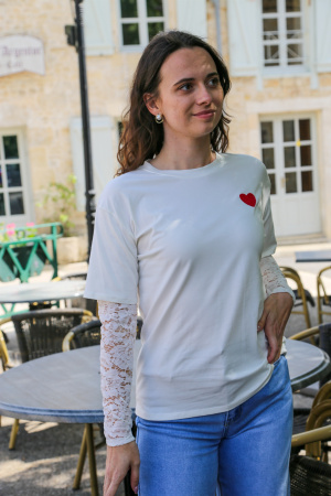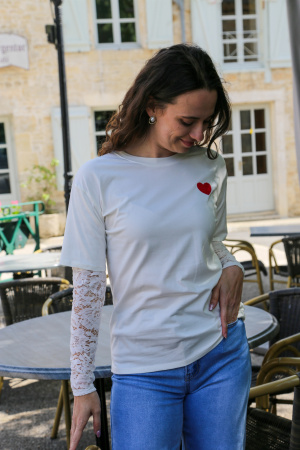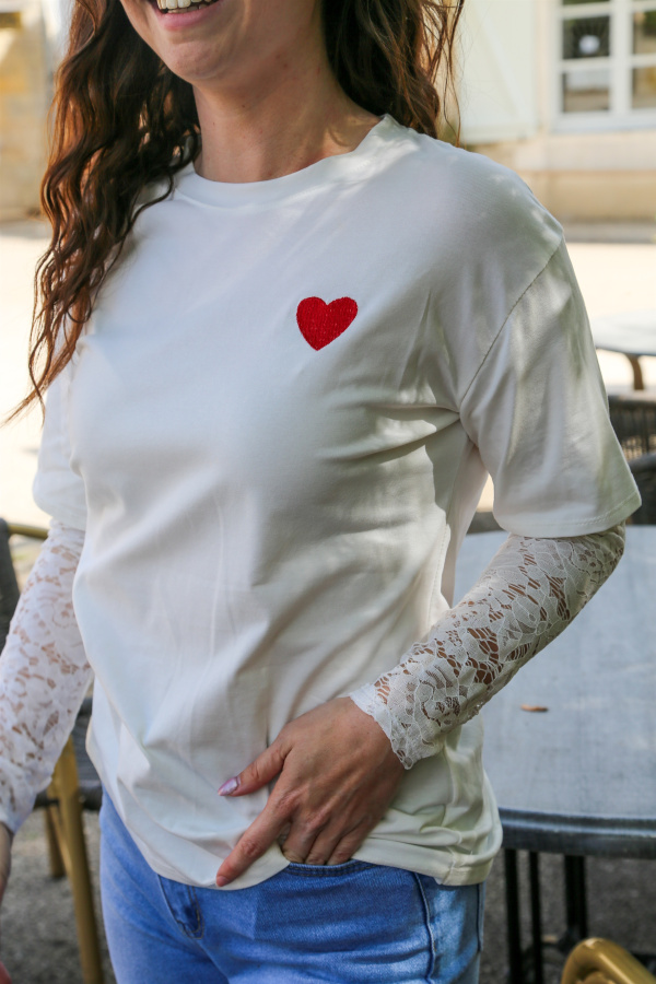 Apportez une touche de féminité et d'élégance à votre tenue avec ce tee-shirt unique.