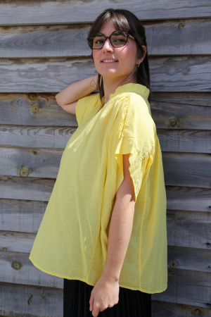 Son col en V flatte subtilement le décolleté, tandis que les manches courtes apportent une touche de décontraction élégante. Facile à associer, ce haut se marie aussi bien avec un jean qu'une jupe fluide pour un look chic sans effort.