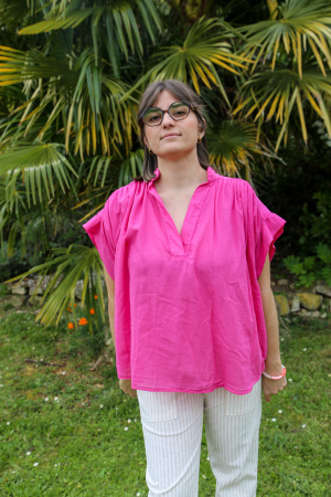 Son col en V flatte subtilement le décolleté, tandis que les manches courtes apportent une touche de décontraction élégante. Facile à associer, ce haut se marie aussi bien avec un jean qu'une jupe fluide pour un look chic sans effort.
