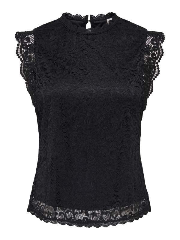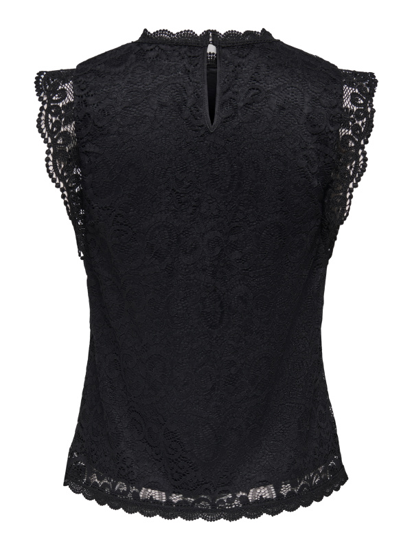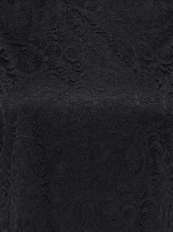 Son jeu de transparence, ses manches volantées et son col festonné signent une silhouette féminine et raffinée. La coupe fluide équilibre parfaitement le détail travaillé de la dentelle.