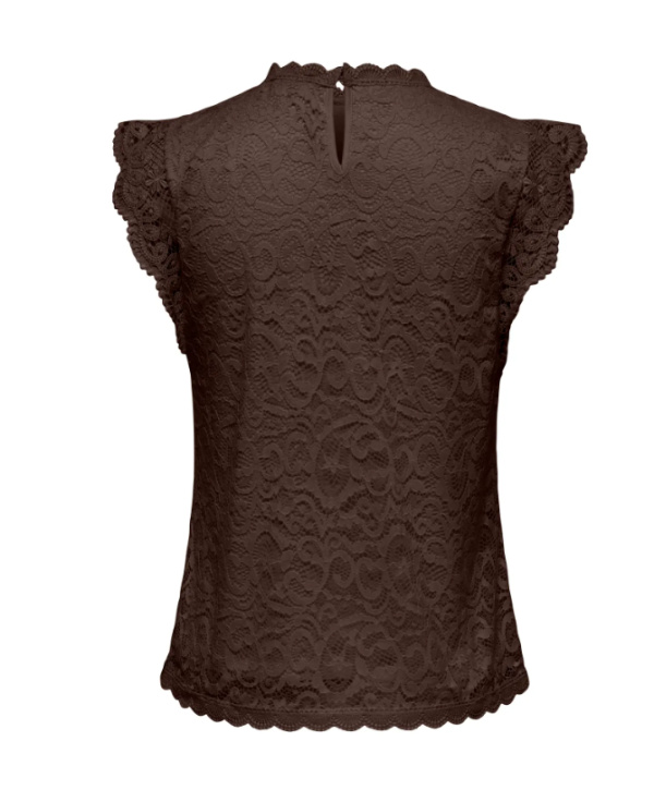 Top en dentelle noire, allure délicatement sophistiquée.