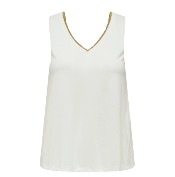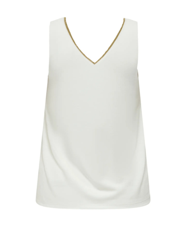 Un top fluide et lumineux, rehaussé d’un délicat liseré doré pour une touche chic.