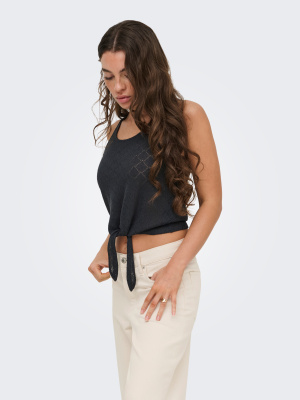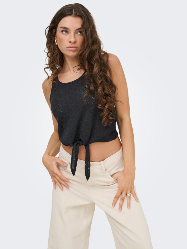 Top sans manches en maille ajourée, à l’allure subtilement bohème et ultra contemporaine.
