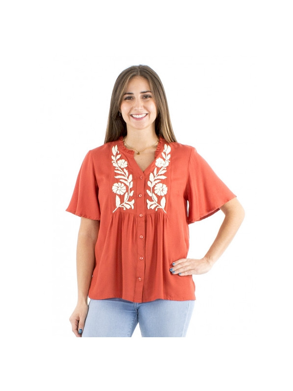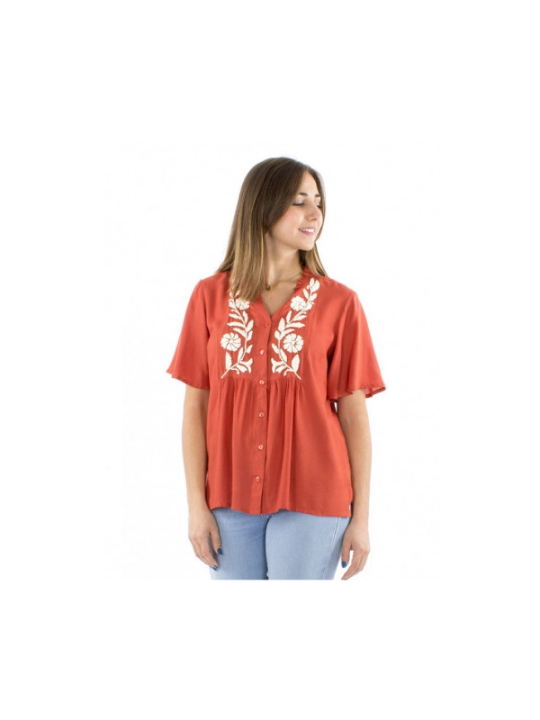 Blouse fluide au coloris chaud et lumineux, idéale pour booster un look en toute simplicité.