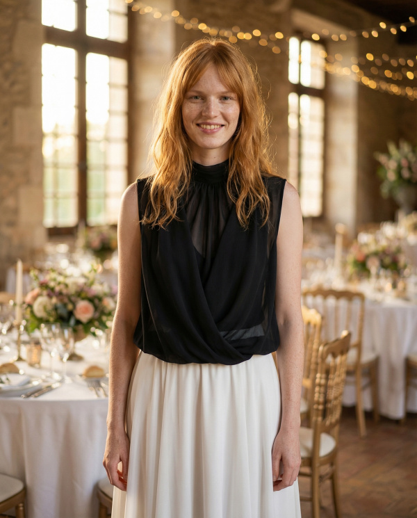 En noir, il incarne une élégance intemporelle. En blanc, il apporte une luminosité douce et estivale. Une pièce versatile, facile à intégrer du quotidien au soir.