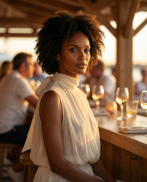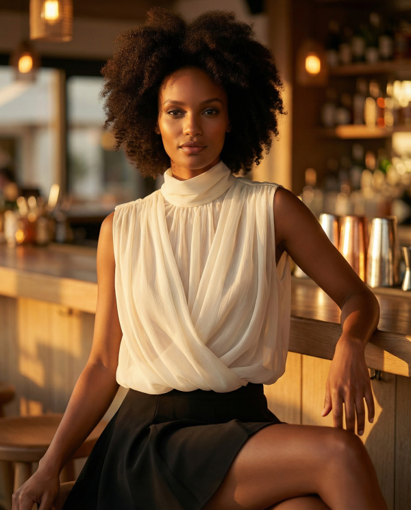 En noir, il incarne une élégance intemporelle. En blanc, il apporte une luminosité douce et estivale. Une pièce versatile, facile à intégrer du quotidien au soir.