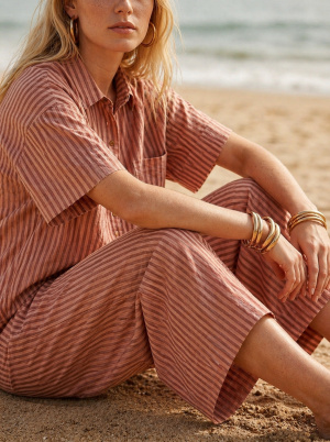 Le motif à rayures apporte du rythme et du caractère, complété par une poche poitrine qui souligne son inspiration utilitaire.